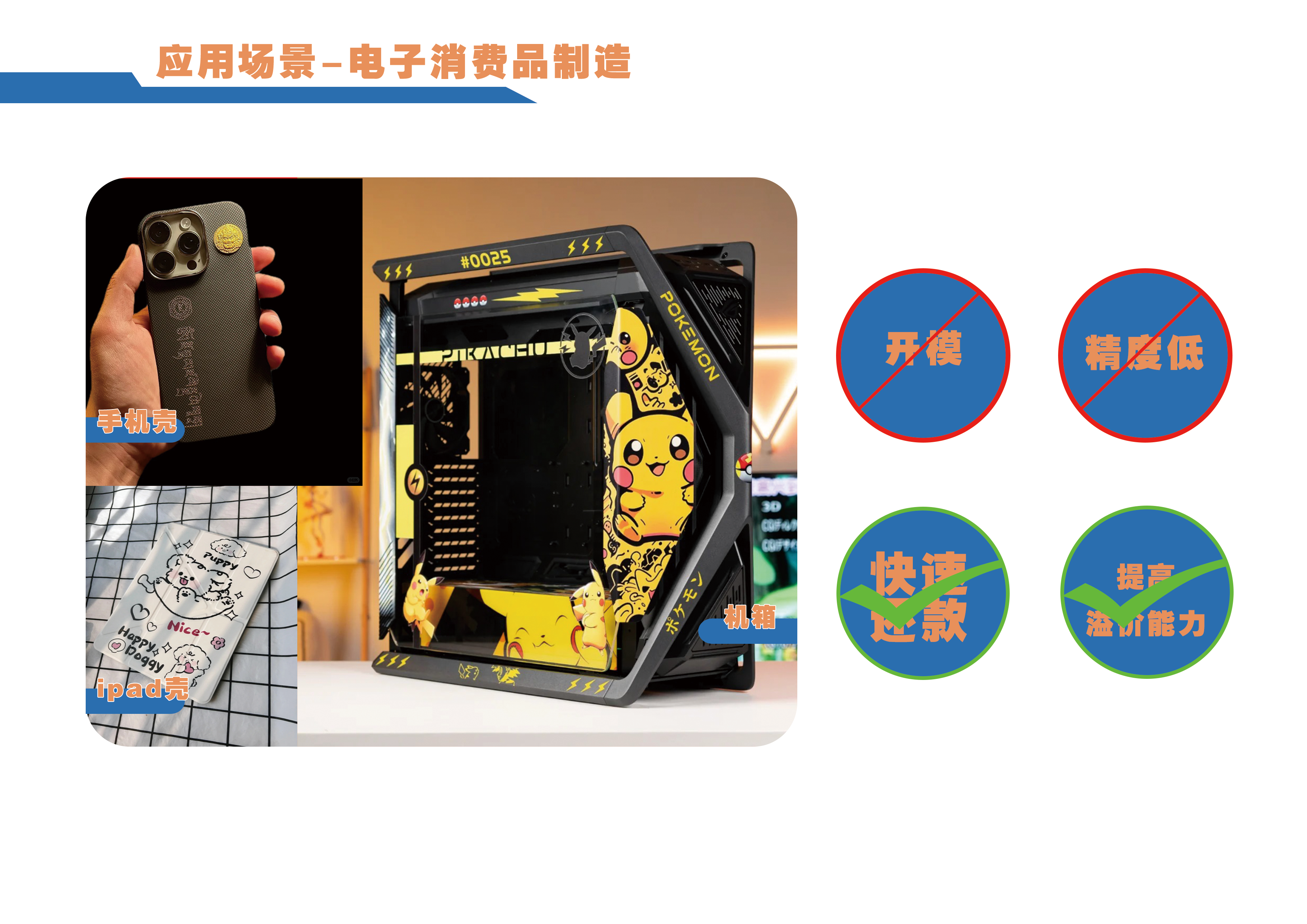 手機(jī)殼、電子產(chǎn)品外殼等小批量柔性生產(chǎn),無(wú)需開(kāi)模成本。支持快速換款與高精度圖案印刷,縮短新品上市周期,滿(mǎn)足消費(fèi)電子快速迭代需求,提升產(chǎn)品溢價(jià)能力。