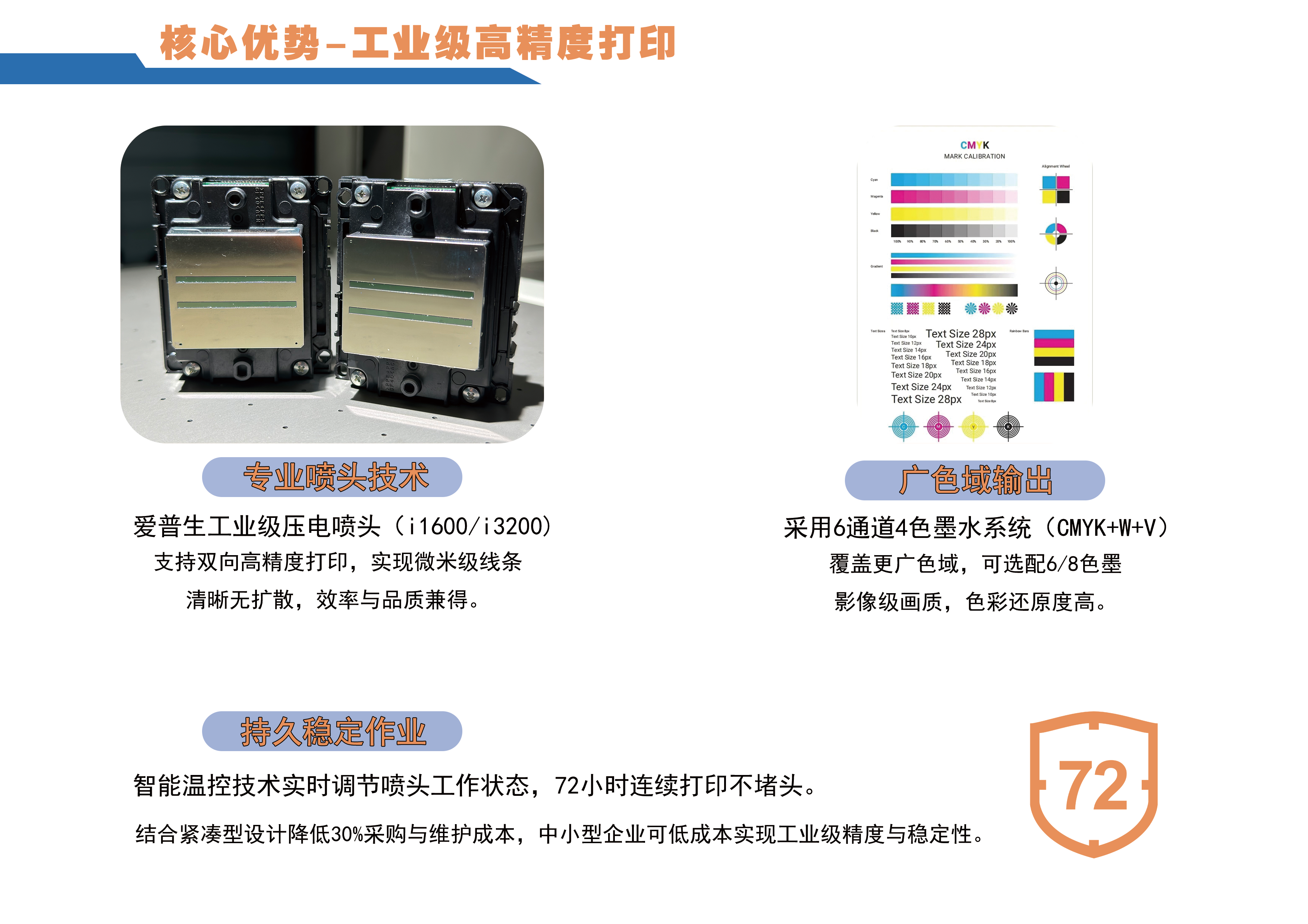專(zhuān)業(yè)噴頭技術(shù):搭載愛(ài)普生工業(yè)級(jí)壓電噴頭(I3200/1600系列),支持雙向高精度打印,實(shí)現(xiàn)微米級(jí)線(xiàn)條清晰無(wú)擴(kuò)散,效率與品質(zhì)兼得。