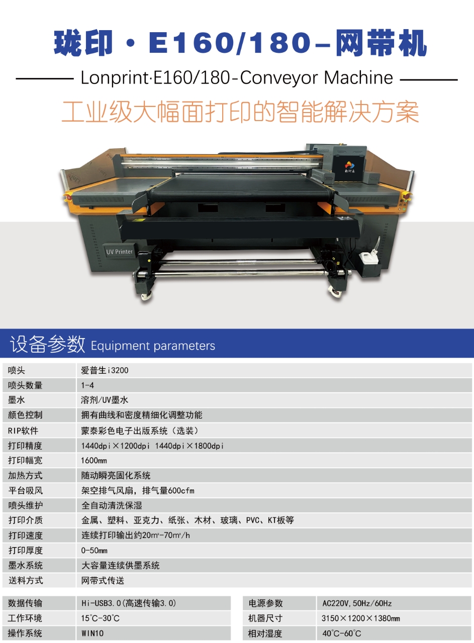 瓏印·E160/180-網帶機 — 工業級大幅面打印的智能解決方案